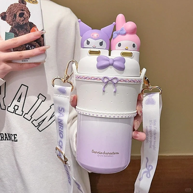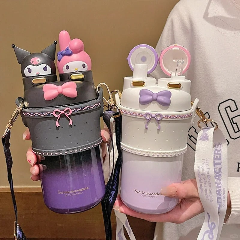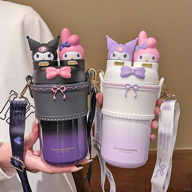 Mit der Sanrio 550 ml Thermoskanne bist du immer gut hydriert und gleichzeitig süß! Diese trendige Thermoskanne ist in zwei bezaubernden Designs mit deinen Lieblingscharakteren von Sanrio erhältlich – My Melody und Kuromi! Mit süßen Verzierungen und einem Tragegriff für bequemes Tragen ist diese Thermoskanne ein echter Hingucker. Sie ist aus 316er Edelstahl gefertigt und sorgt so für ultimative Haltbarkeit, ohne dabei auf Stil zu verzichten. Ob im Büro, in der Schule oder unterwegs – diese elegante und stylische Thermoskanne ist perfekt für alle, die süße Accessoires lieben. Mach dich bereit für einen Kawaii-Look mit diesen schicken Sanrio-Thermoskannen!